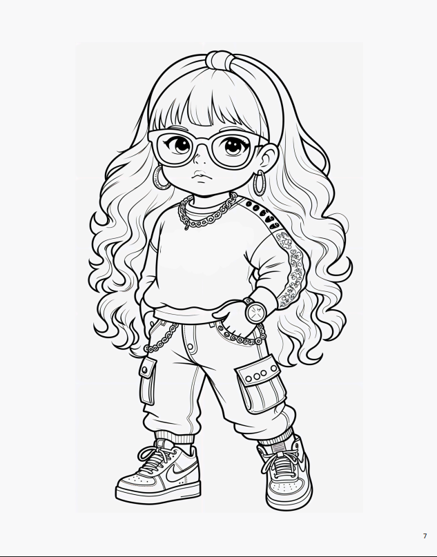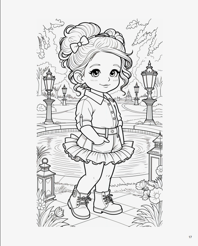 Розмальовка чудово підходить для дозвілля вдома, занять у школі, дитячих студій або як подарунок маленькій модниці. Формат PDF (A4) легко роздруковується, а сторінки можна розмальовувати знову й знову.